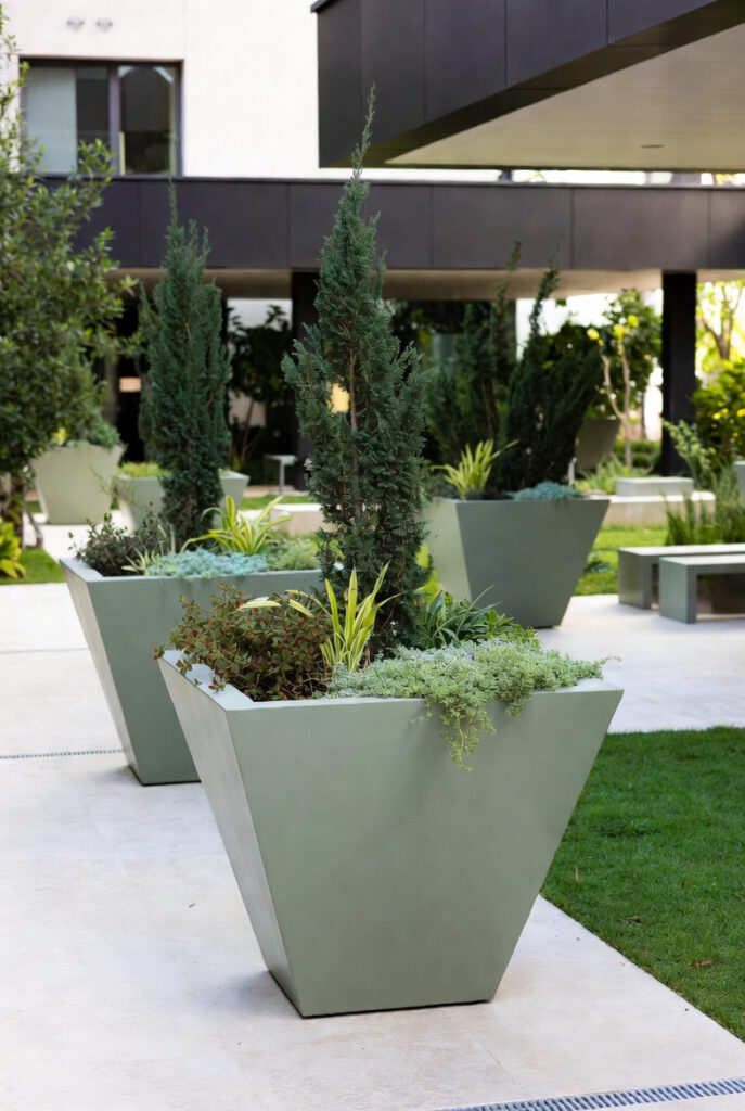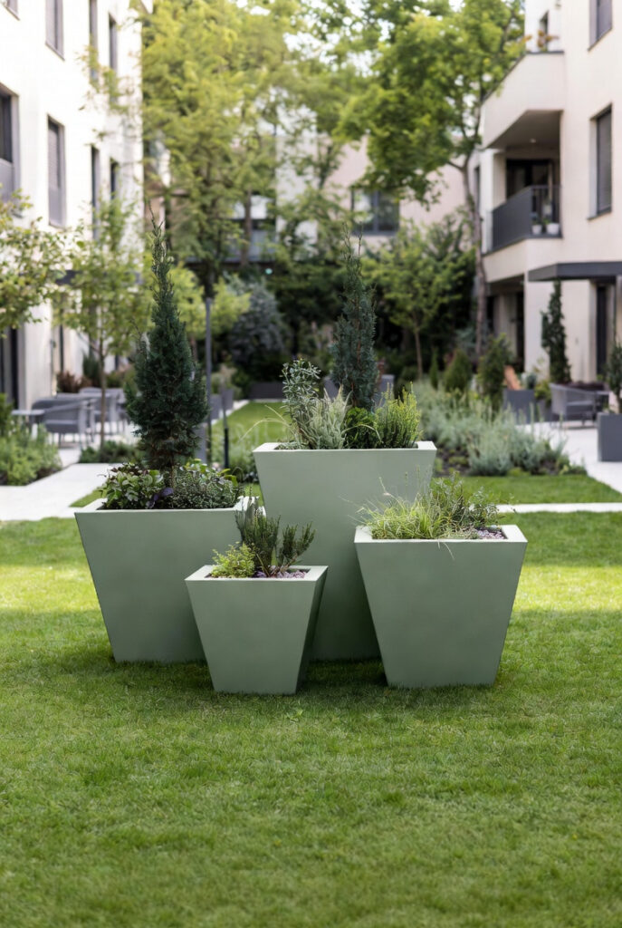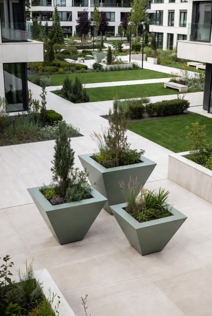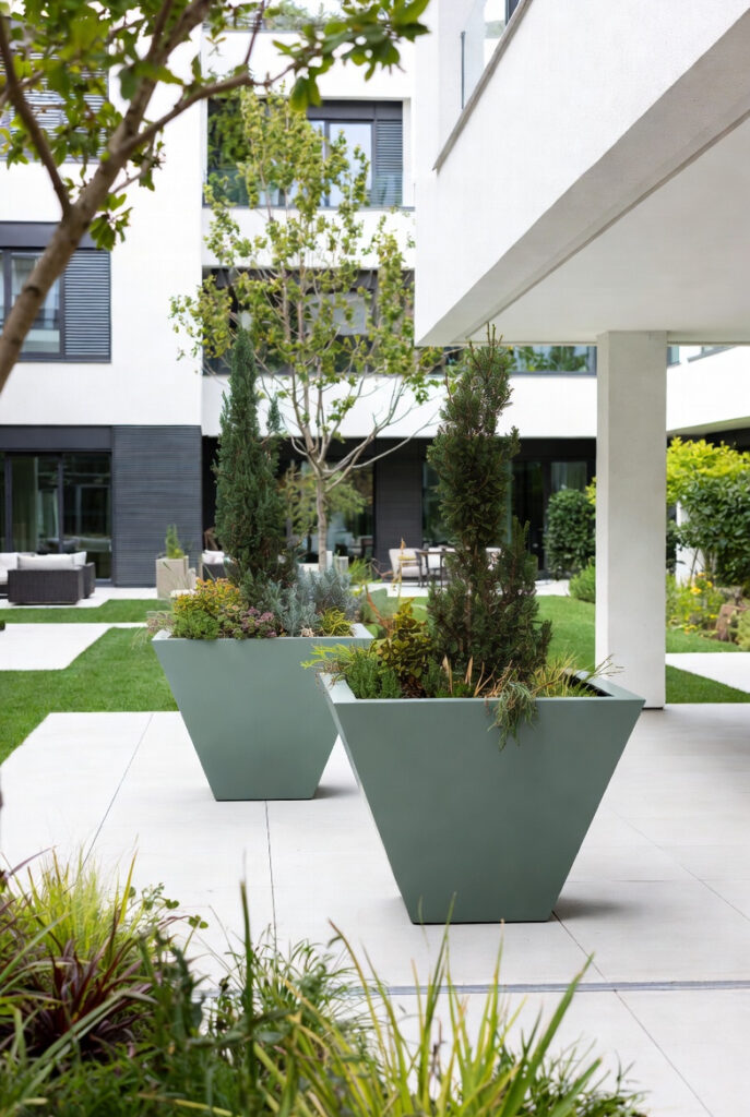 Rezidans ortak kullanım alanlarında estetik ve yönlendirici saksı yerleşimleri tercih edilmiştir.